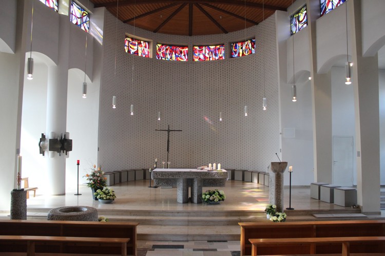 ve neuekirche innen[…] Die Kirche ist durch den starken Zuzug von Heimatvertriebenen längst zu klein geworden. Am 27. März 1960 nahm H.H. Prälat Hennecke die Grundsteinlegung der neuen Kirche vor, die nach den Plänen des Architekten A. Schmidt, Bielefeld, gebaut wird.