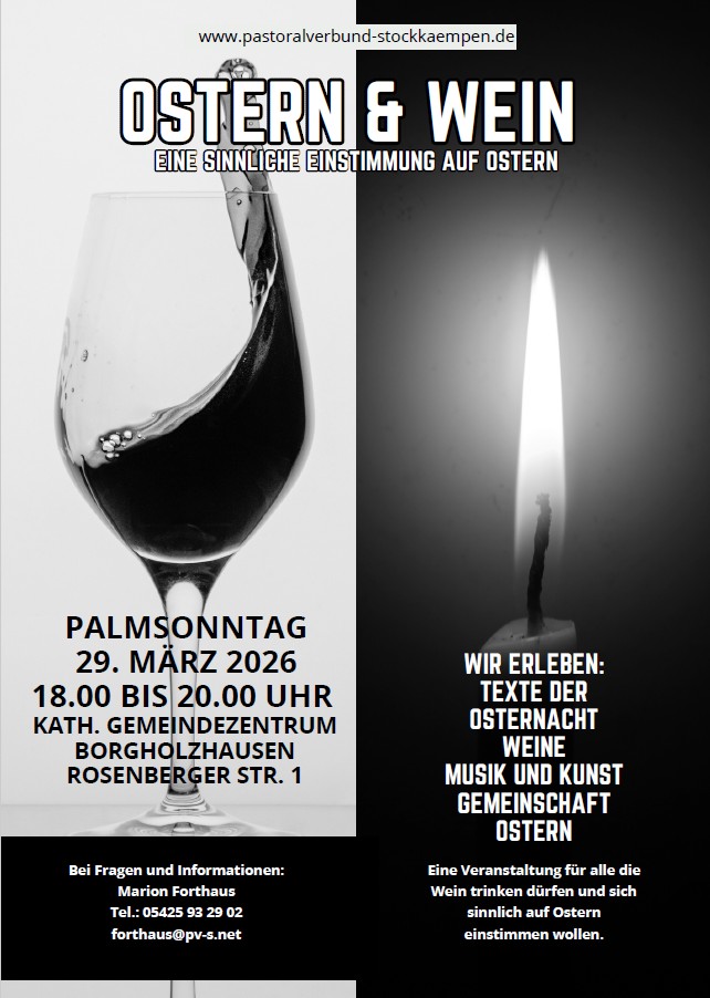 Eine herzliche Einladung an alle, die sich bereits am Palmsonntag, 29. März auf Ostern einstimmen wollen.